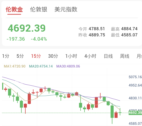 周一(2月2日)亚市早盘,金价低开延续跌势,一度下跌超4%,触及4585.07美元/盎司,目前交投于4703.50美元/盎司附近。