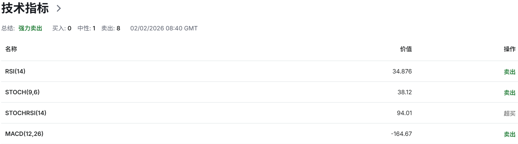值得注意的是,随机震荡指标(STOCHRSI)高达94.01,进入超买区间,这通常是一个强烈的短期反向信号,暗示在持续暴跌后,市场可能正酝酿一次急速的、技术性的反弹或盘整,但这与基本面的疲弱形成矛盾。