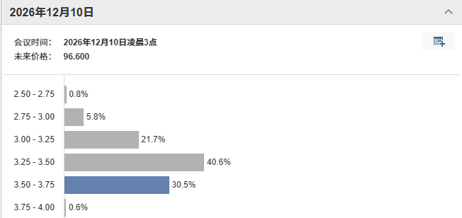 美联储将于周三公布政策决定,市场一致预期基准利率将维持在3.50%-3.75%不变。真正的焦点在于随后的“点阵图”与主席鲍威尔的表态。自伊朗冲突爆发以来,市场对2026年降息的预期已从约55个基点骤降至26个基点,即预计本年仅一次降息。