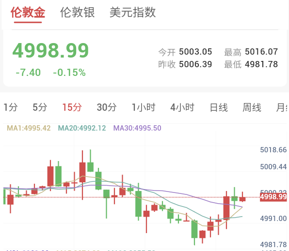 现货黄金价格当前交投于4998.99美元/盎司,日内微跌0.15%,在5000美元整数关口附近窄幅整理。