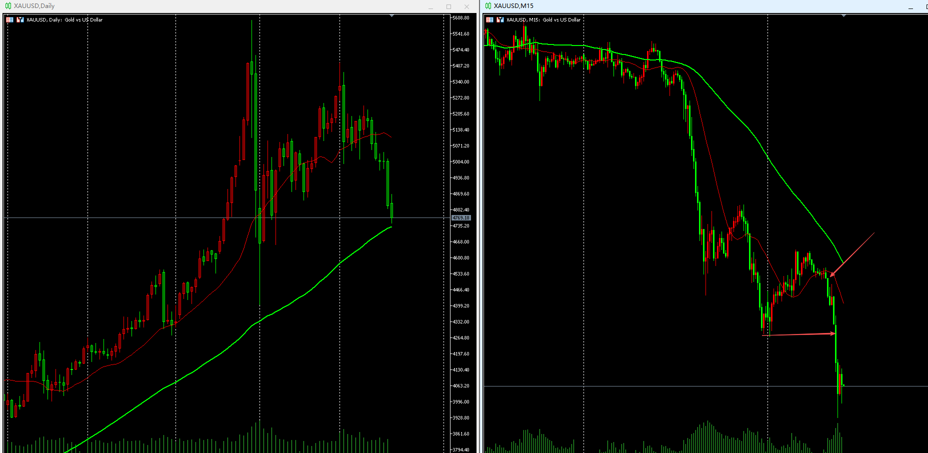 短线操作(15分钟):均线呈空头排列。早盘下破20均线或突破新低时可进场做空,按自身盈亏比持仓即可。