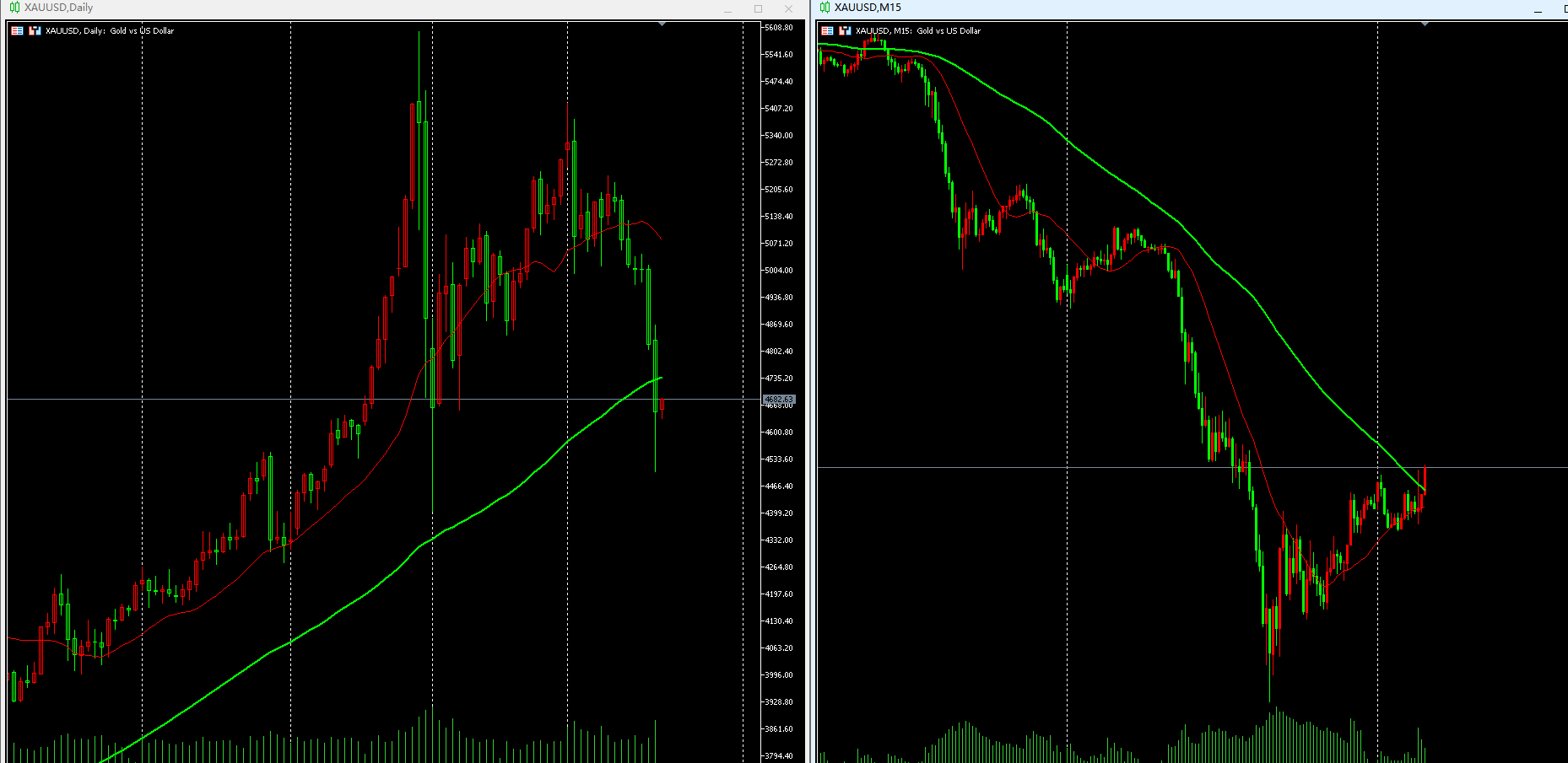 短线操作(15分钟):均线呈空头排列,价格位于80均线上方。建议等待均线与价格形成共振机会,当前保持观望。