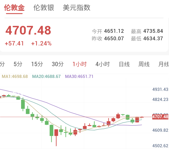 北京时间3月20日16:10,现货黄金价格日内上涨1.24%,报4707.48美元/盎司,在连续七个交易日下跌后出现反弹。