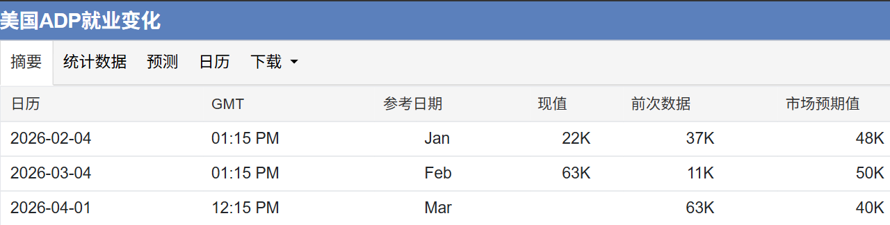 ADP就业(4月1日):预期新增4-5万人,作为周五非农的前瞻指引。